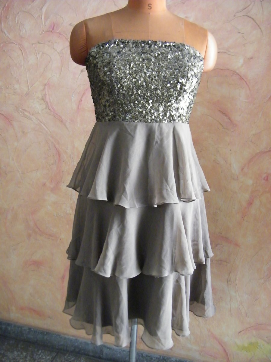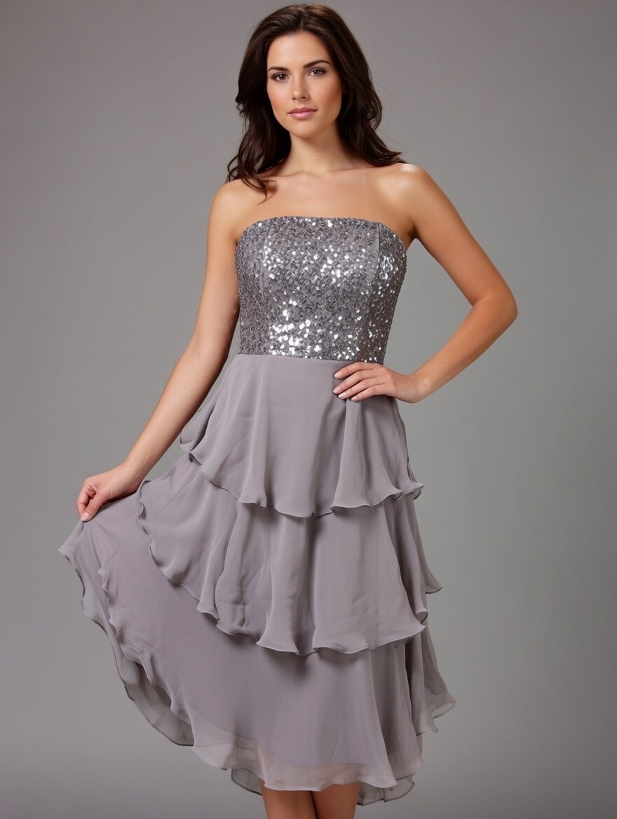 Bella Sequined Tiered Short Cocktail Off Shoulder Dress