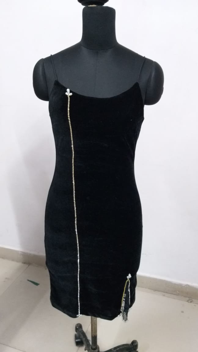 Hand Embellished Black Evening Dress with beautiful Hand Bead Work